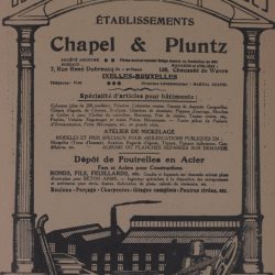 CHAPEL & PLUNTZ Bureaux, magasins et ateliers Adresses connues à Ixelles : 7, Rue René Dubreucq 138, Chaussée de Wavre 7-9 Rue de Vienne Entrepris...