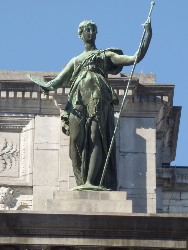 Statue allégorique représentant la Peinture due au sculpteur Égide Mélot et fondue par la Compagnie des Bronzes sur la façade du Musée d’Art ancien (Old Masters Museum).