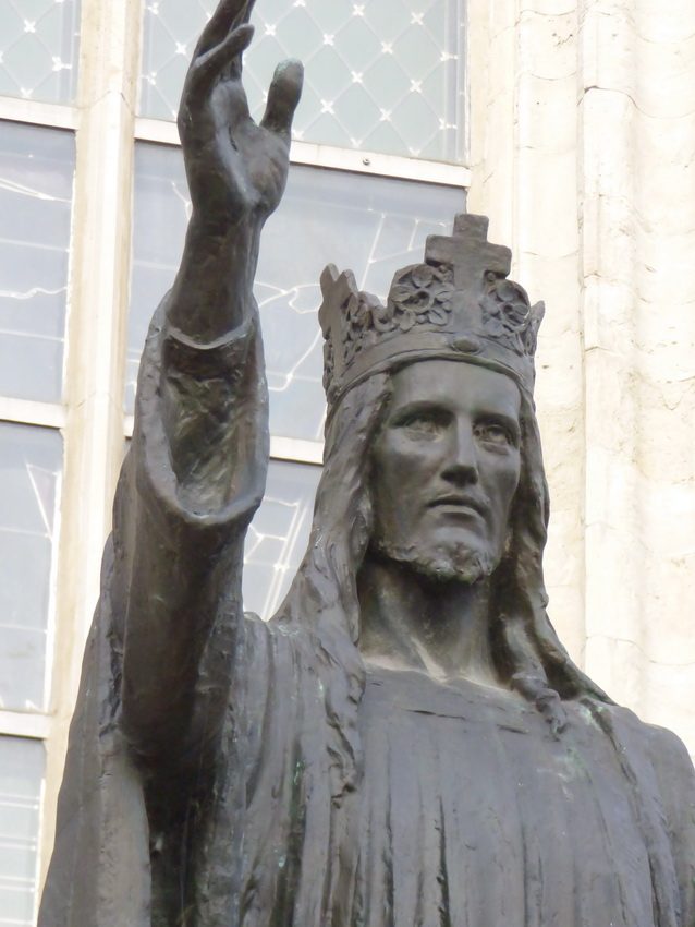 Statue en bronze du Christ-Roi située à côté de la basilique de Halle.