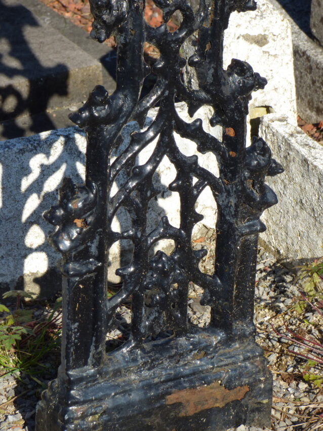 Croix funéraire en fonte dans le cimetière autour de l’église Sainte-Vierge à Bernissart.
