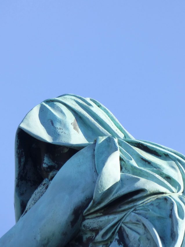 Statue en bronze due à Julien Dillens placée au-dessus de l’entrée du Cimetière de la commune de Saint-Gilles, sis à Uccle.