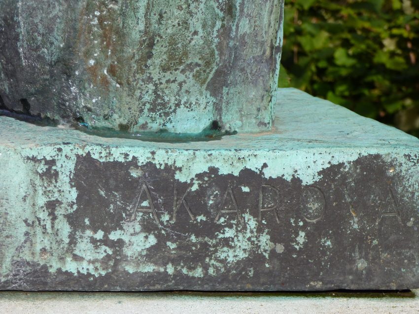 Reposant sur un socle en pierre, le masque du poète et romancier d’origine montoise Charles Plisnier (il fut le premier écrivain non français à remporter le prix Goncourt en 1937) est l’œuvre de Marguerite Acarin, plus connue sous le pseudonyme d’Akarova.