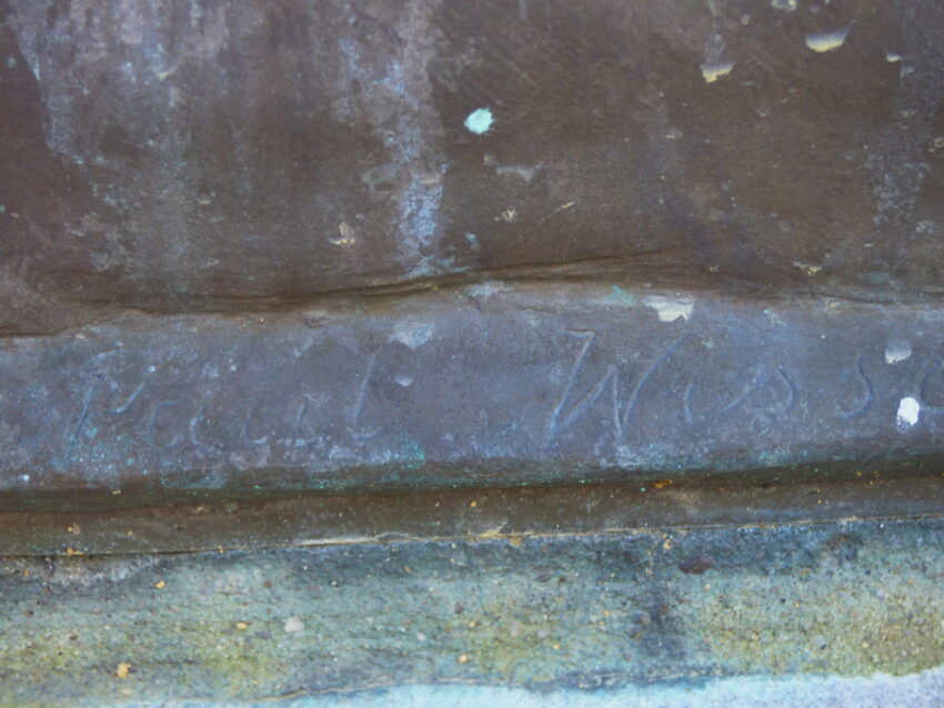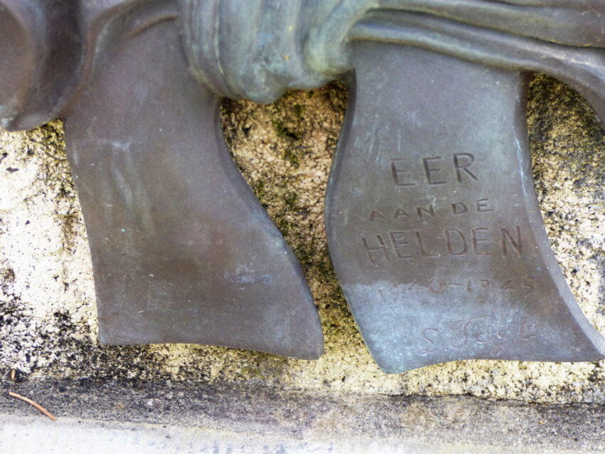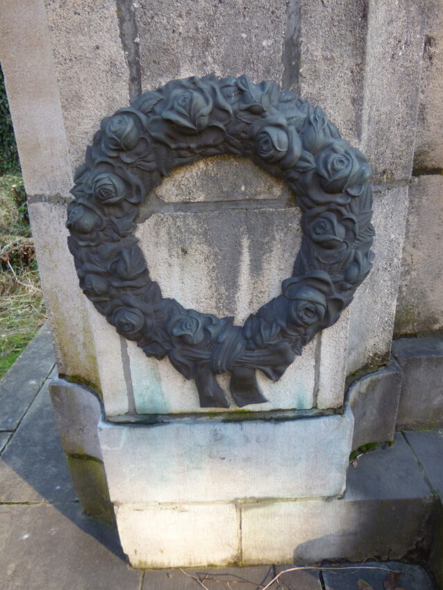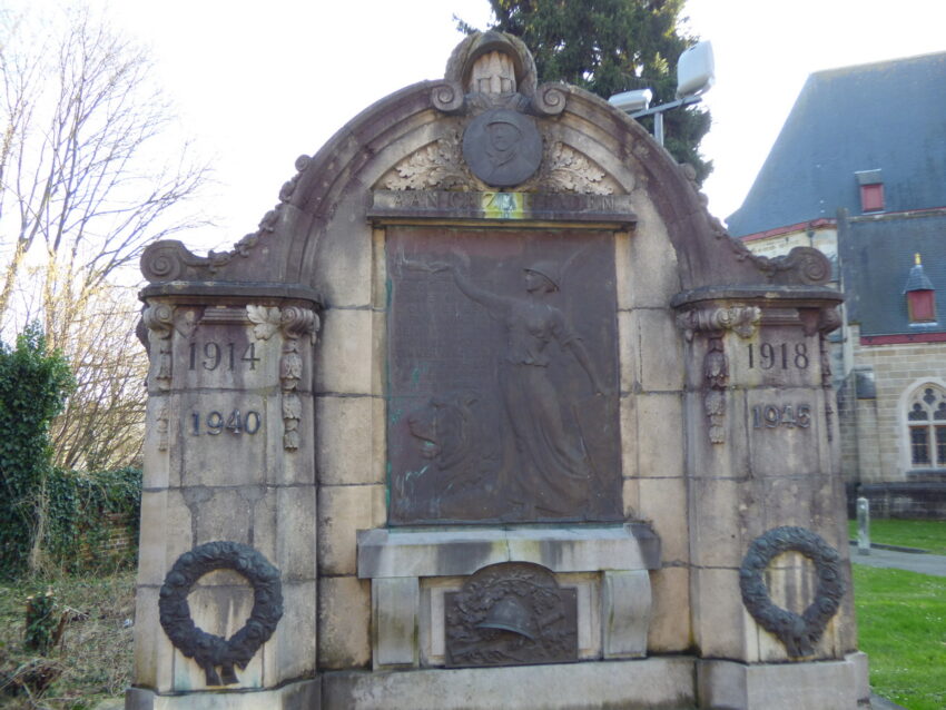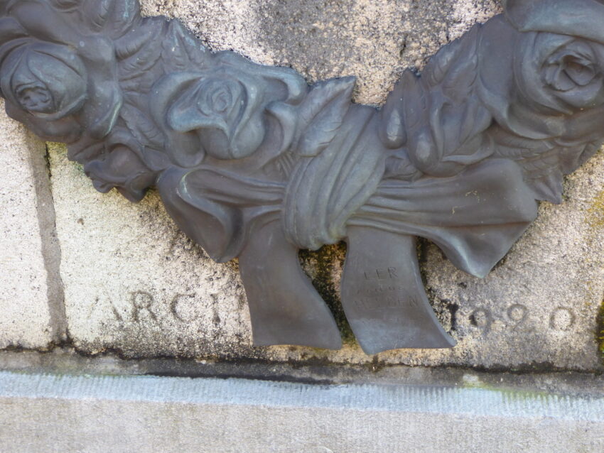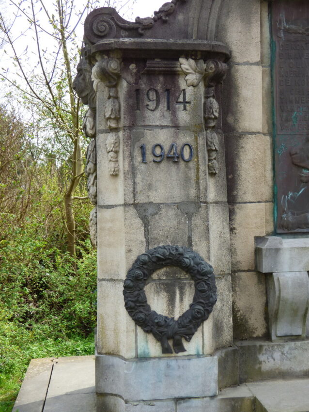 Après la Seconde Guerre mondiale, deux couronnes de bronze ont été placées et les inscriptions "1914-1918" et "1940-1945" ont été ajoutées, Derrière les couronnes se trouvait une inscription aujourd'hui illisible : Arch (?) 1920