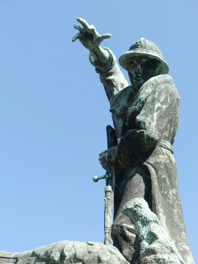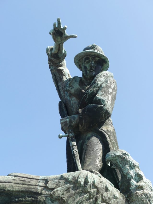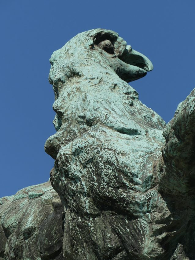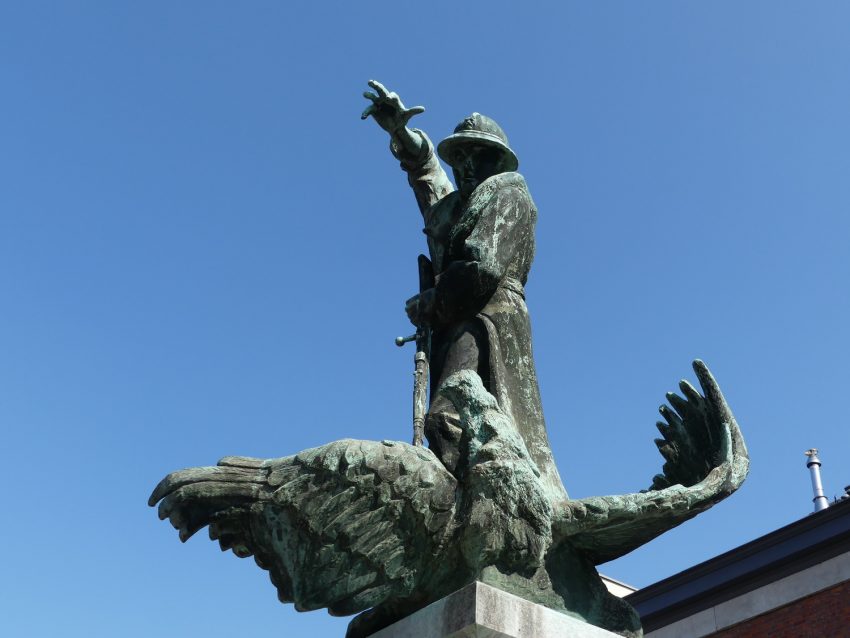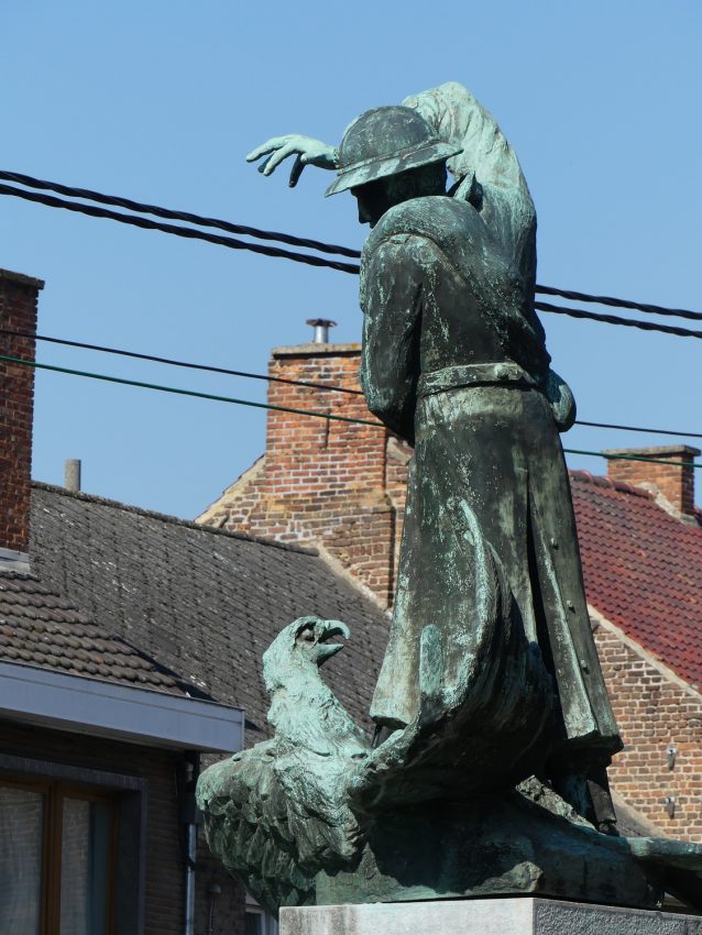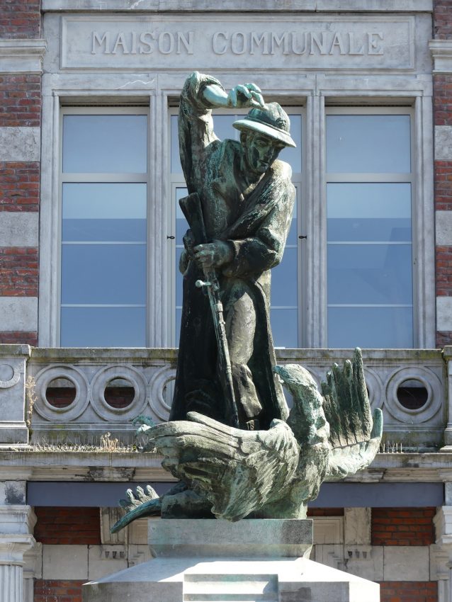Monument aux morts représentant un soldat tuant l'aigle allemand avec son fusil.