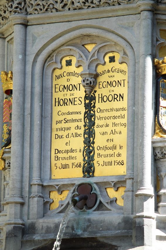 Ne voulant pas s'opposer ouvertement à la propagation des nouvelles idées de tolérance religieuse tout en restant fidèles au Roi, leur position devint critique; ils se trouvèrent bientôt enveloppés dans la tourmente des événements, et tombèrent victimes de cette période troublée de notre histoire. Le duc d'Albe, gouverneur général des Pays-Bas, revêtit de sa signature la sentence du Conseil des Troubles, qui avait condamné les deux malheureux comtes à la peine de mort pour crime de lèse-majesté et de rébellion. Les deux défenseurs des libertés des Pays-Bas furent décapités le lendemain (5 juin 1568) devant la Maison du Roi, sur la Grand-Place."