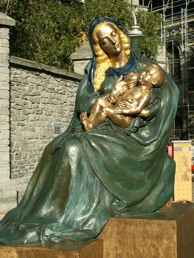 Ensemble monumental à la mémoire de Roger de le Pasture, réalisé par Marcel Wolfers, représentant Saint Luc dessinant la Vierge à l’Enfant situé près de la cathédrale Notre-Dame.