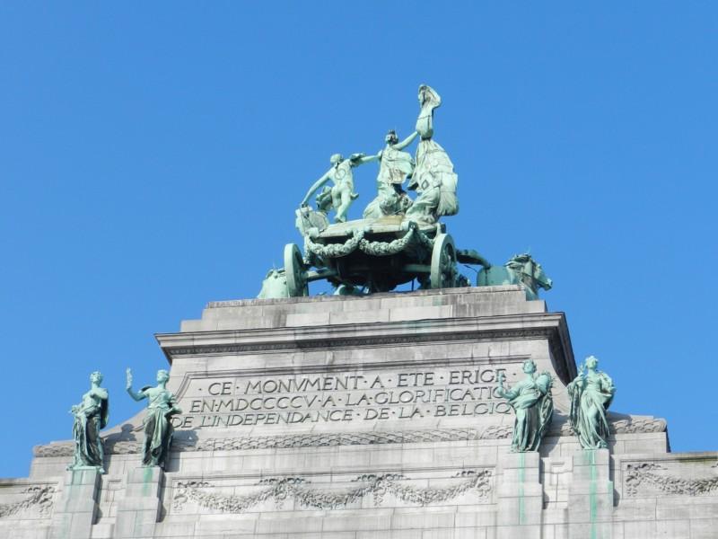 Le Quadrige de la province du Brabant sculpté par Thomas Vinçotte (1850-1925 (pour le char) et Jules Lagae (1862-1931) (pour les chevaux) fondu par Peter Huckschlag à Karlsruhe.